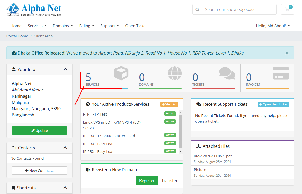 The first step is to login to your Alphanet Client Area, this can typically be accessed by going to https://account.alpha.net.bd/login
