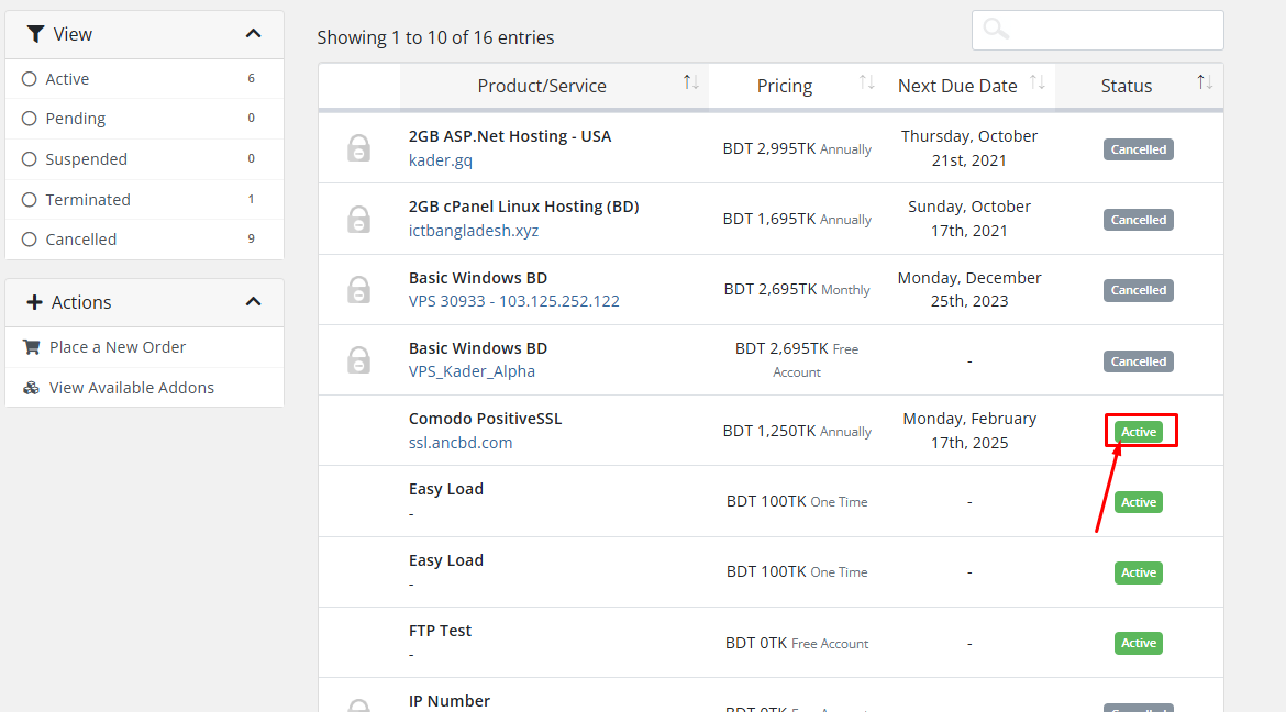 Step 10. After adding your record, you will see "Order Status: Pending". Wait for some time and then you will see Order Status: Active.